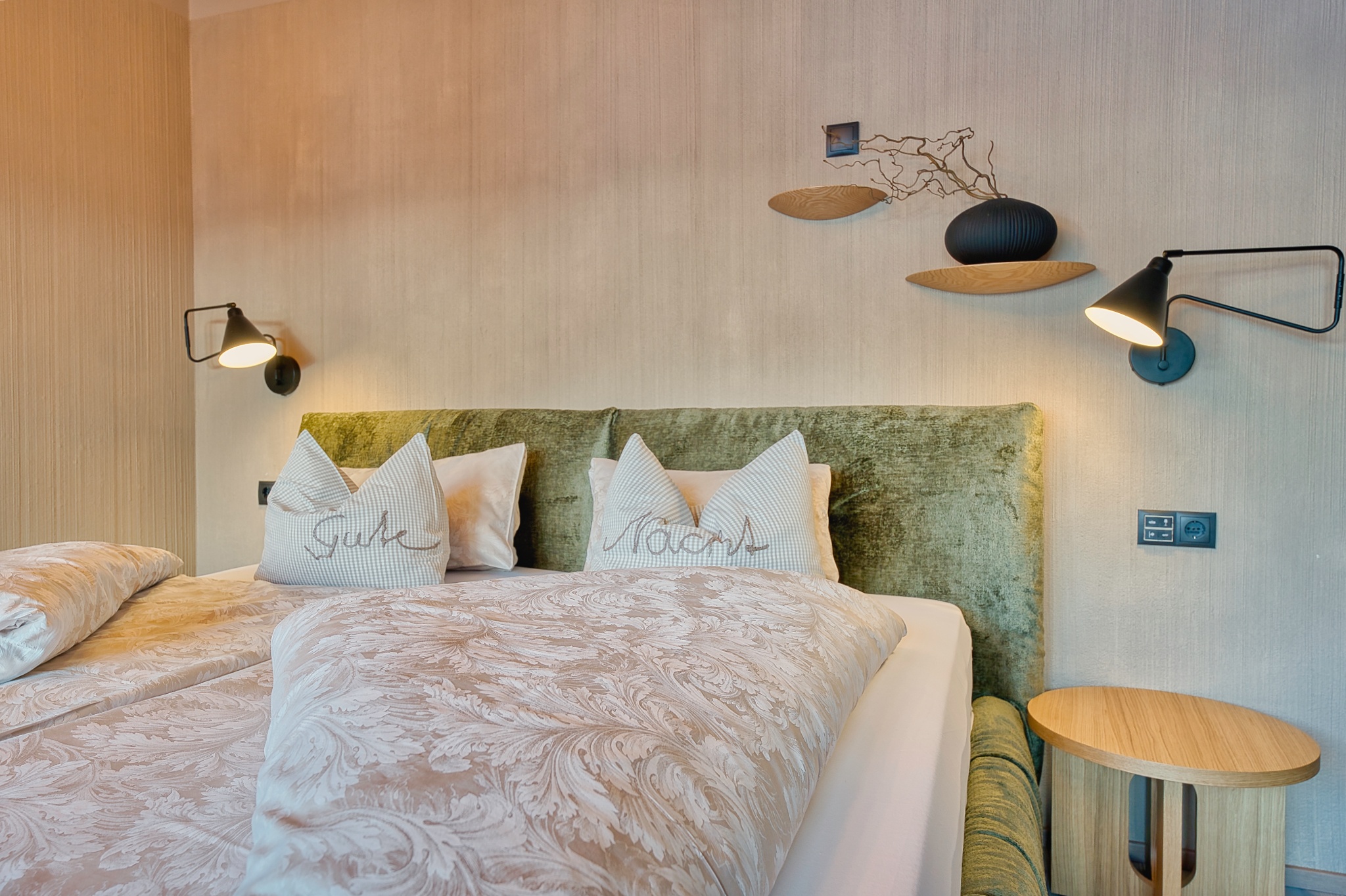 – sie reguliert die Luftfeuchte, sorgt für ein ausgeglichenes Raumklima und unterstützt erholsamen Schlaf. Ein kleiner Schminktisch und eine feine Bücherauswahl verleihen dem Raum eine persönliche Note und unterstreichen die individuelle Atmosphäre.